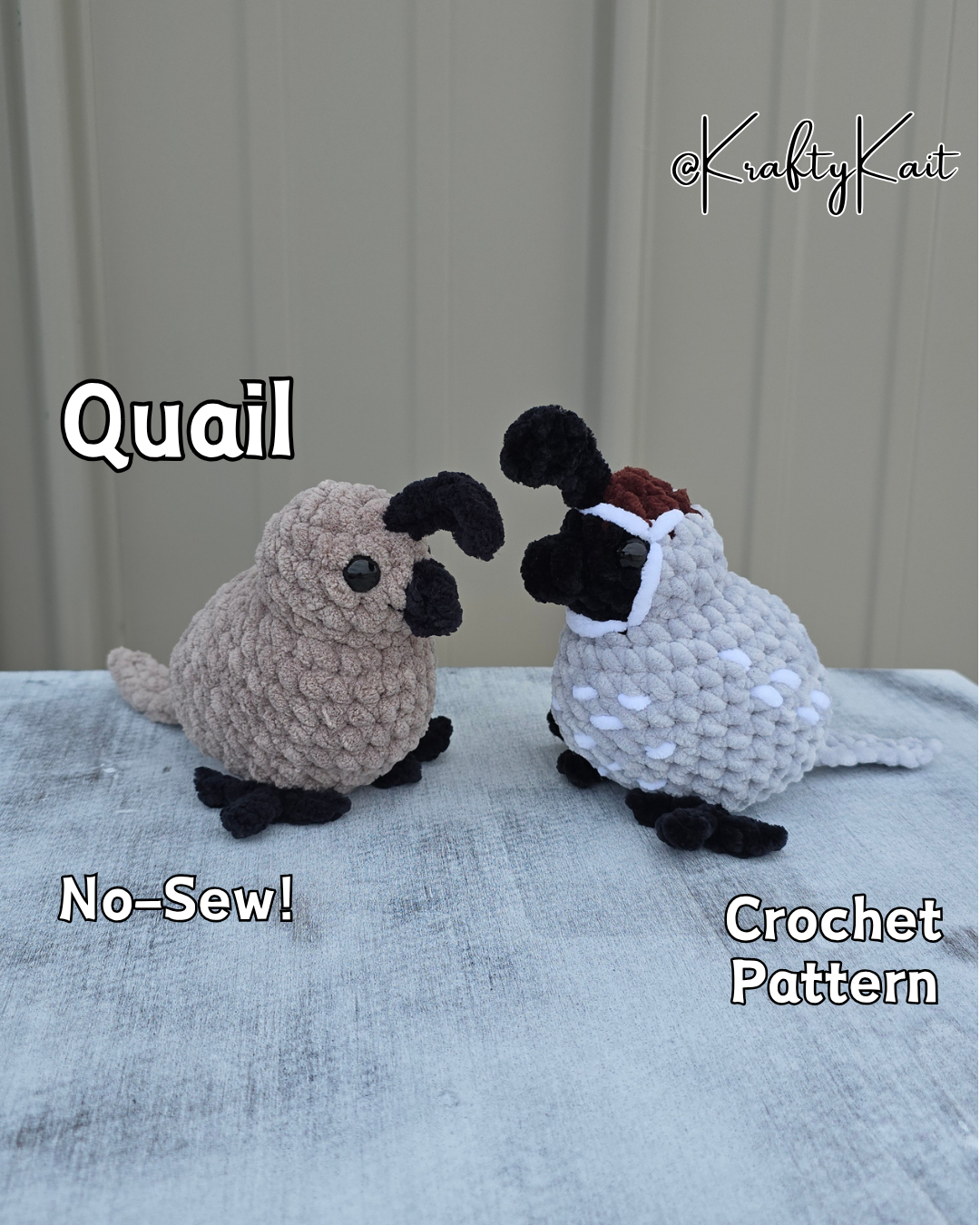 Crochet PATTERN: Quail - California or Gambel's Quail - No-Sew and Market Friendly Amigurumi Plushie
