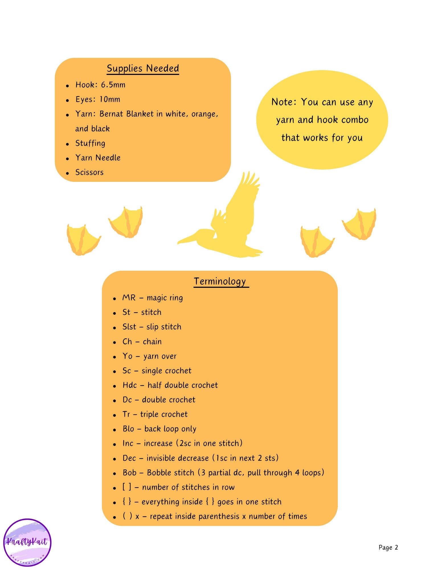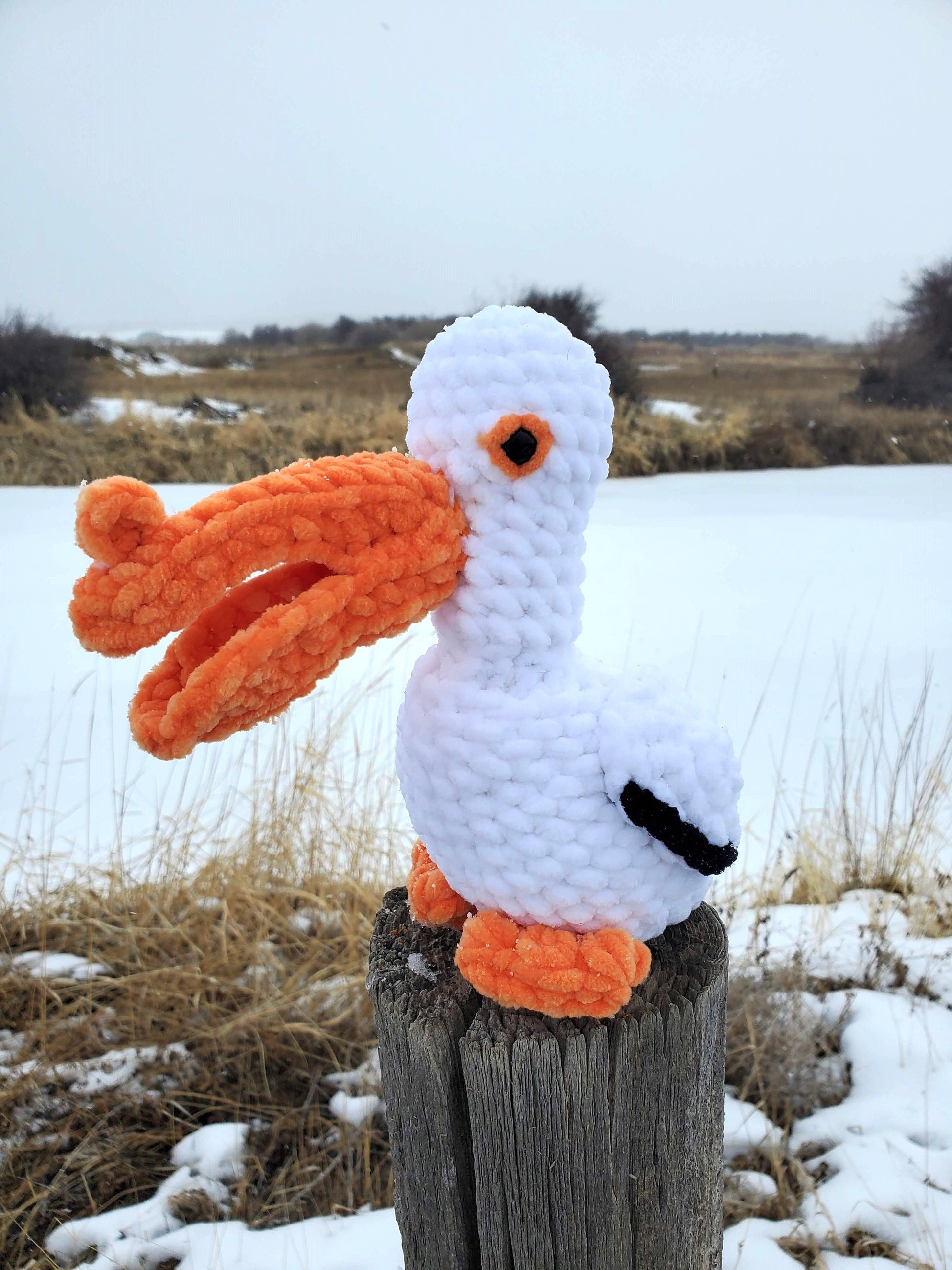 The pattern includes all instructions and photos to crochet a White Pelican Plushie.